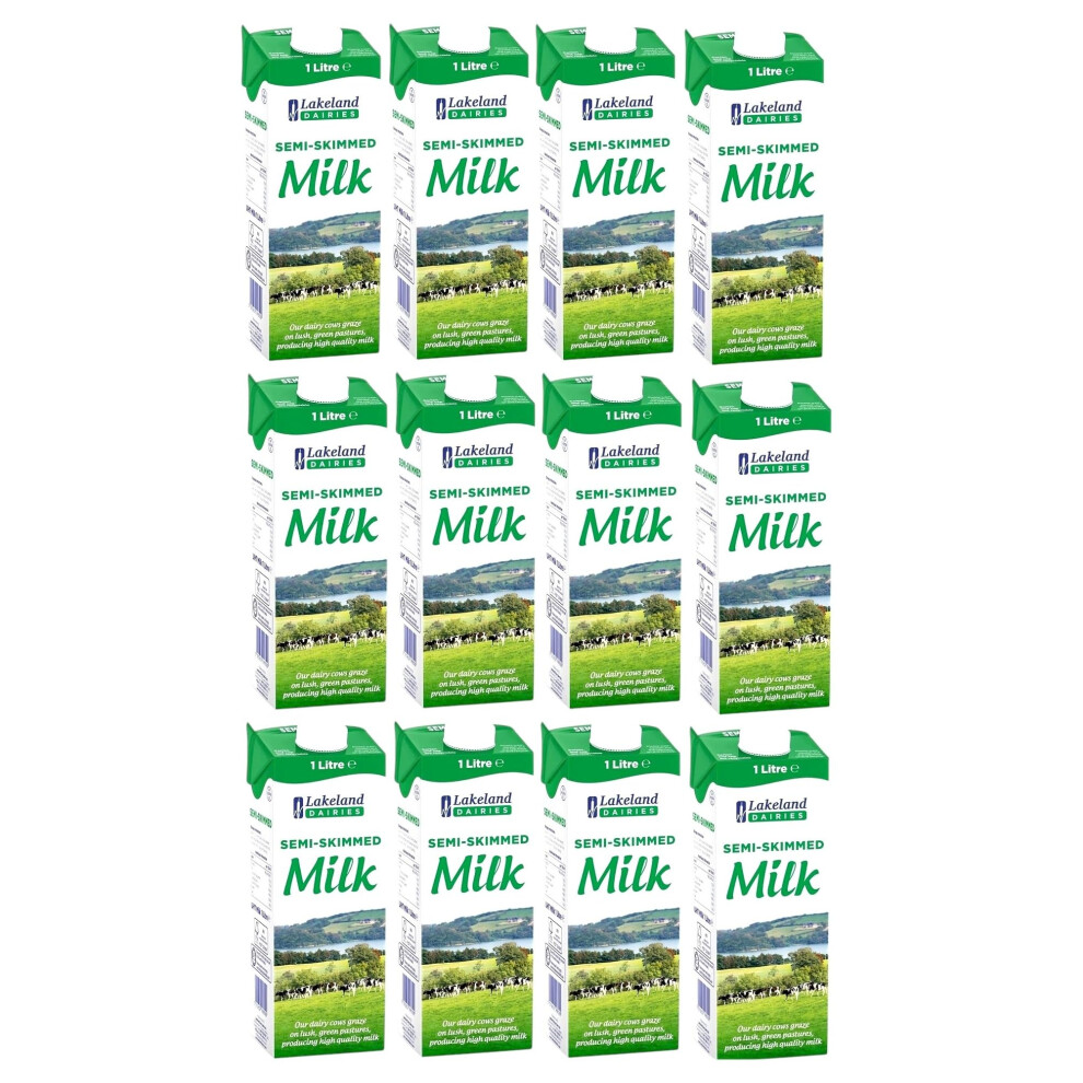Lakeland Long-life Semi Skimmed UHT Milk, Calcium, High in Protein, 1L (Pack of 12, Total 12000ml)