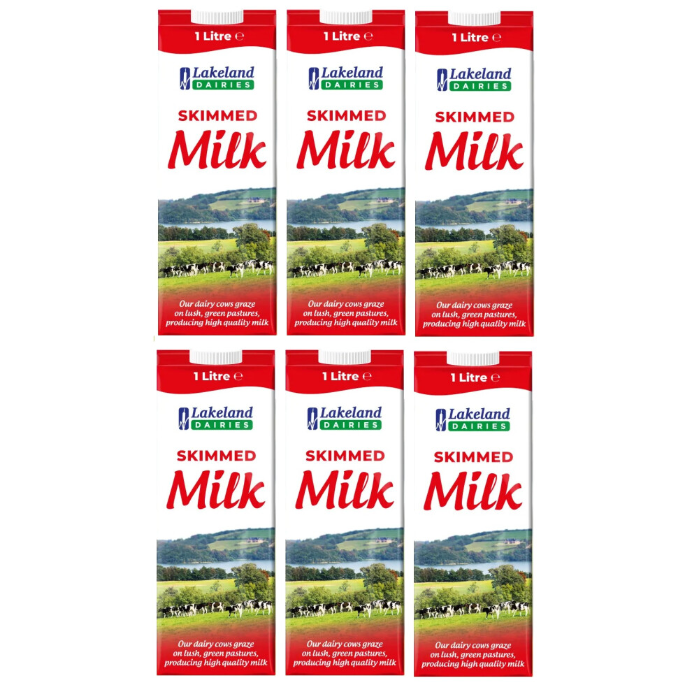 Lakeland Dairies Long life Skimmed UHT Milk, High Protein & Calcium, 1000ML (Pack of 6, Total 6000ML)