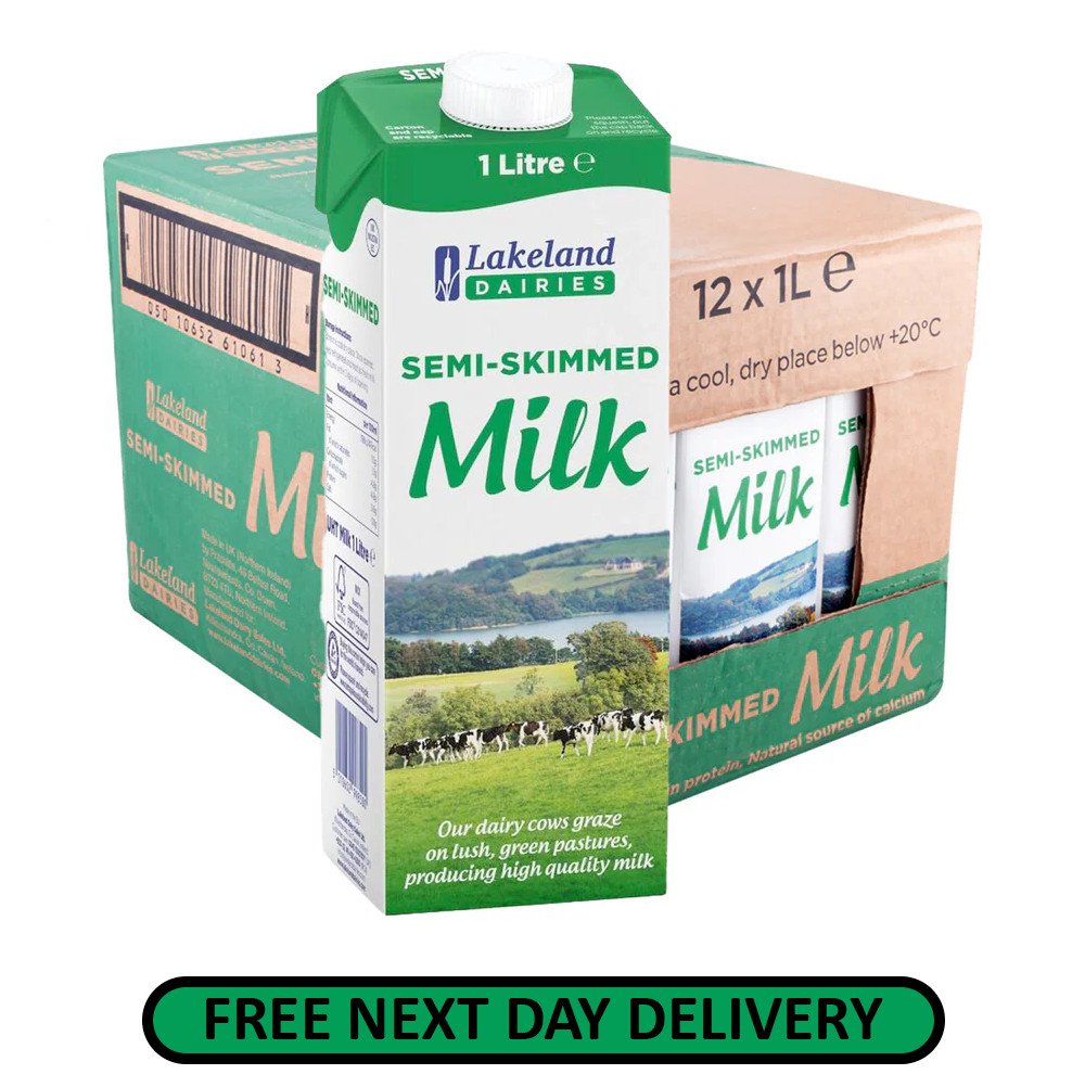 Lakeland Dairies Semi Skimmed UHT Long Life Milk 1L - Pack of 12 Cartons