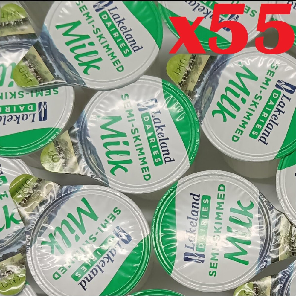 55x Semi-skimmed UHT Milk 12ml Individually Wrapped Mini Portions Pots Jiggers Lakeland