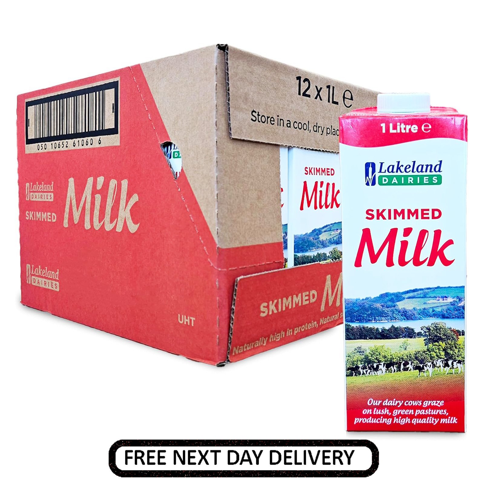 Lakeland Dairies Skimmed UHT Long Life Milk 1L - Pack of 12 Cartons
