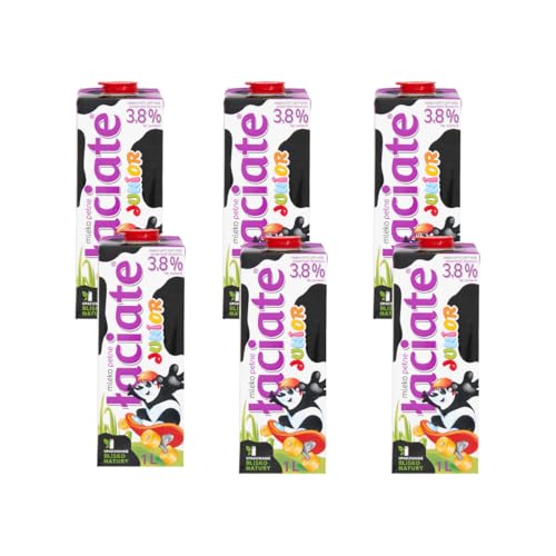 Laciate UHT Milk Junior 1L 3.8% Fat - Long Life - Ambient - Calcium, Protein, Vitamins, Minerals - (Pack of 6)