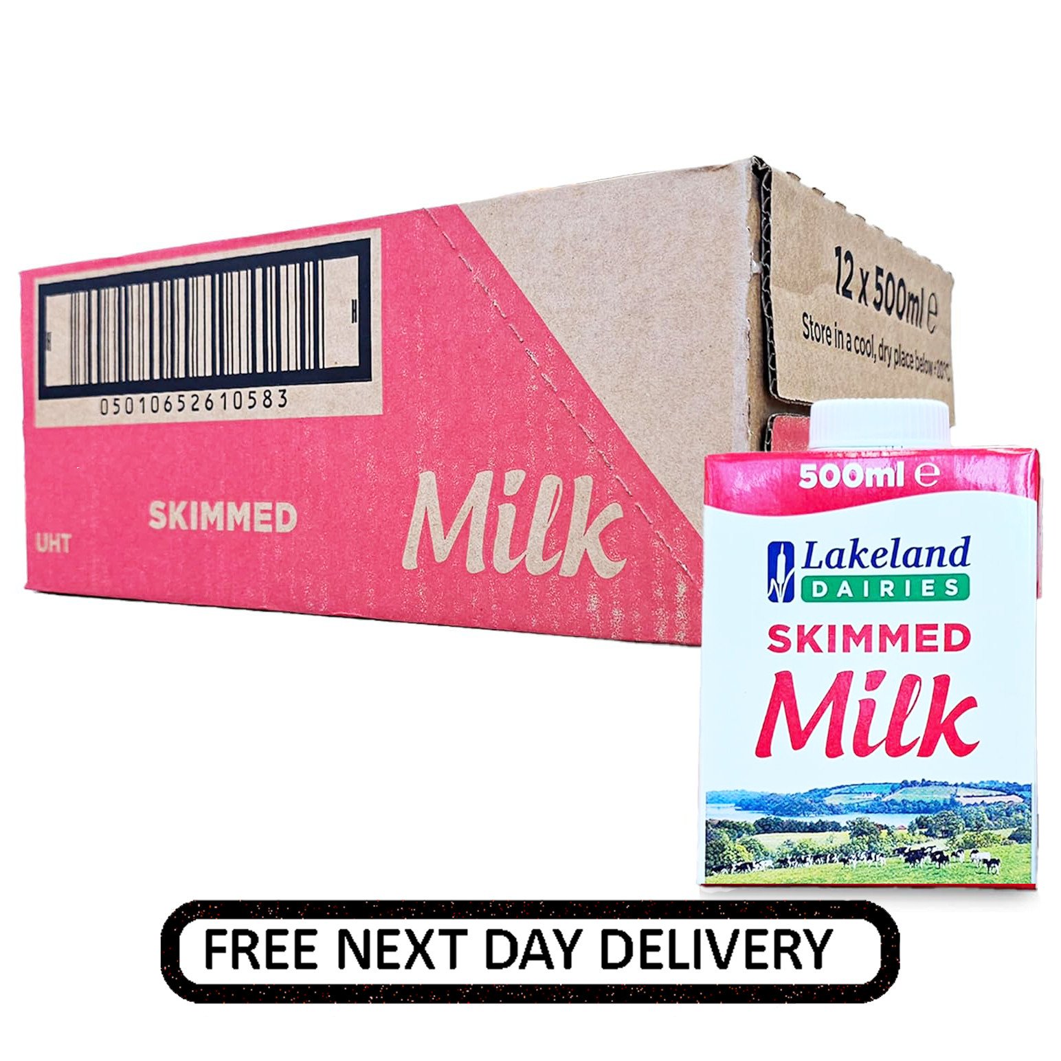 Lakeland Dairies Skimmed UHT Long Life Milk 500ml - Pack of 12 Cartons