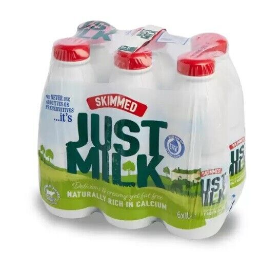 Candia Just Milk UHT Long Life Skimmed Fresh Diet No Fat Milk Bottles Pack 6x 1L