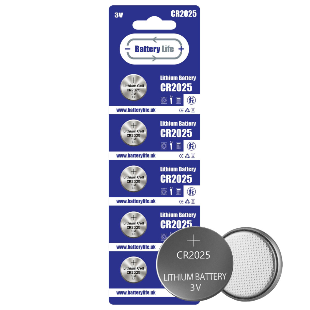 Battery Life CR2025 Batteries 3V Coin Button Cell CR 2025 Lithium Long Life For Car Key fob, Scales, Toys, Watch, LED Lights & More UK Brand (5 pack)