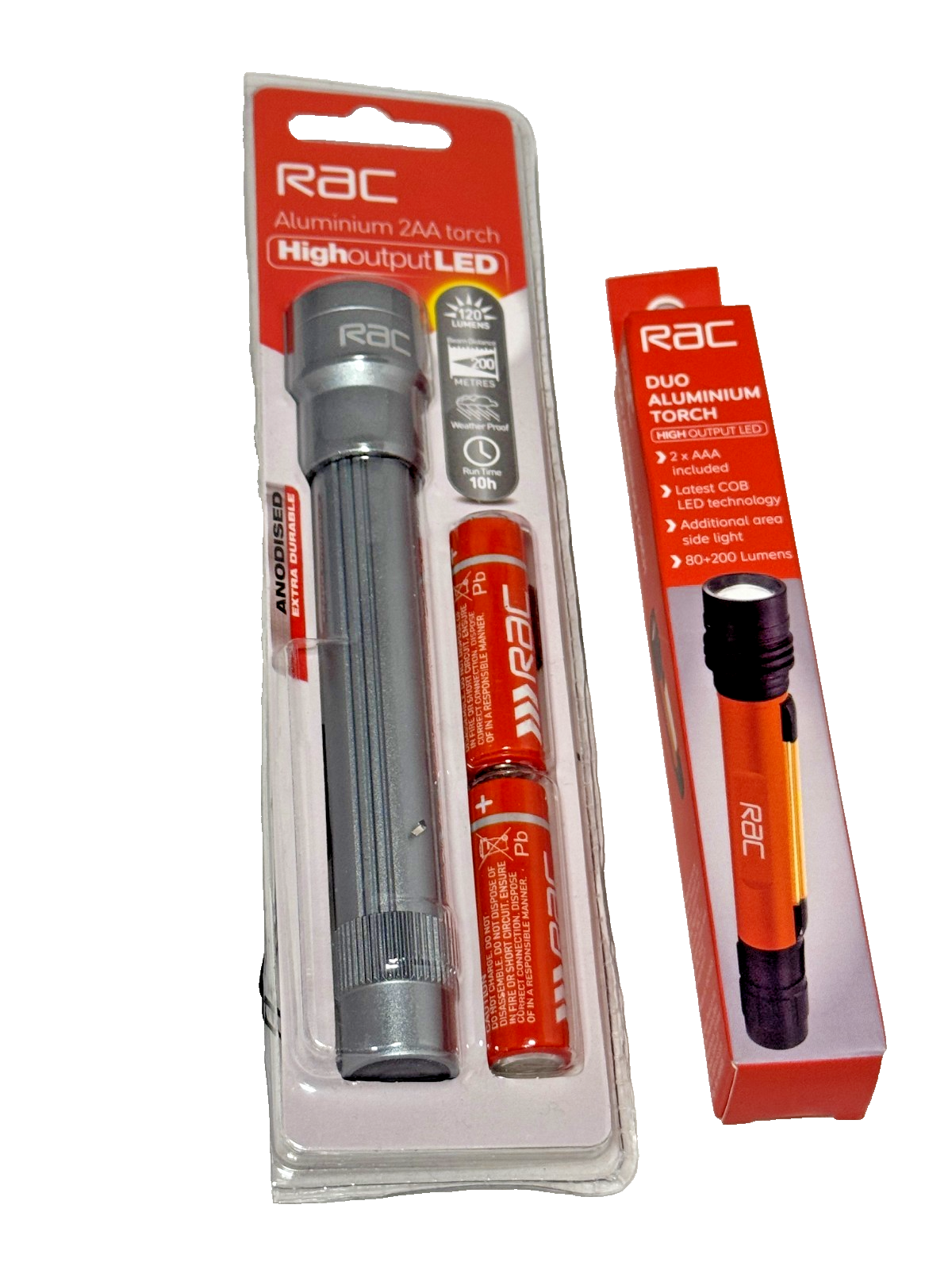 RAC Torch Car Set 2 LED Aluminium Torches Inc Batteries Flashlight Torch LED UK