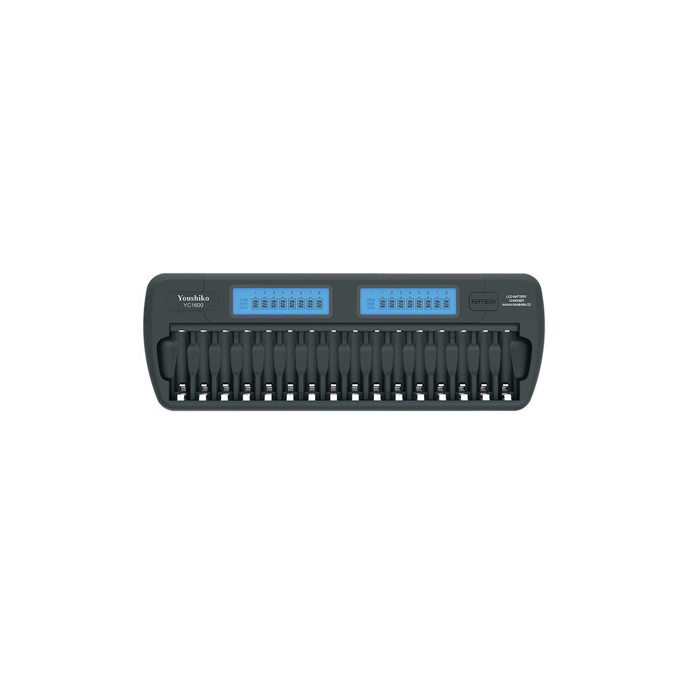Youshiko YC1600 Intelligent Battery Charger ( Official UK Version ) for 16 x AA / AAA batteries ( Including Car 12V Adapter )