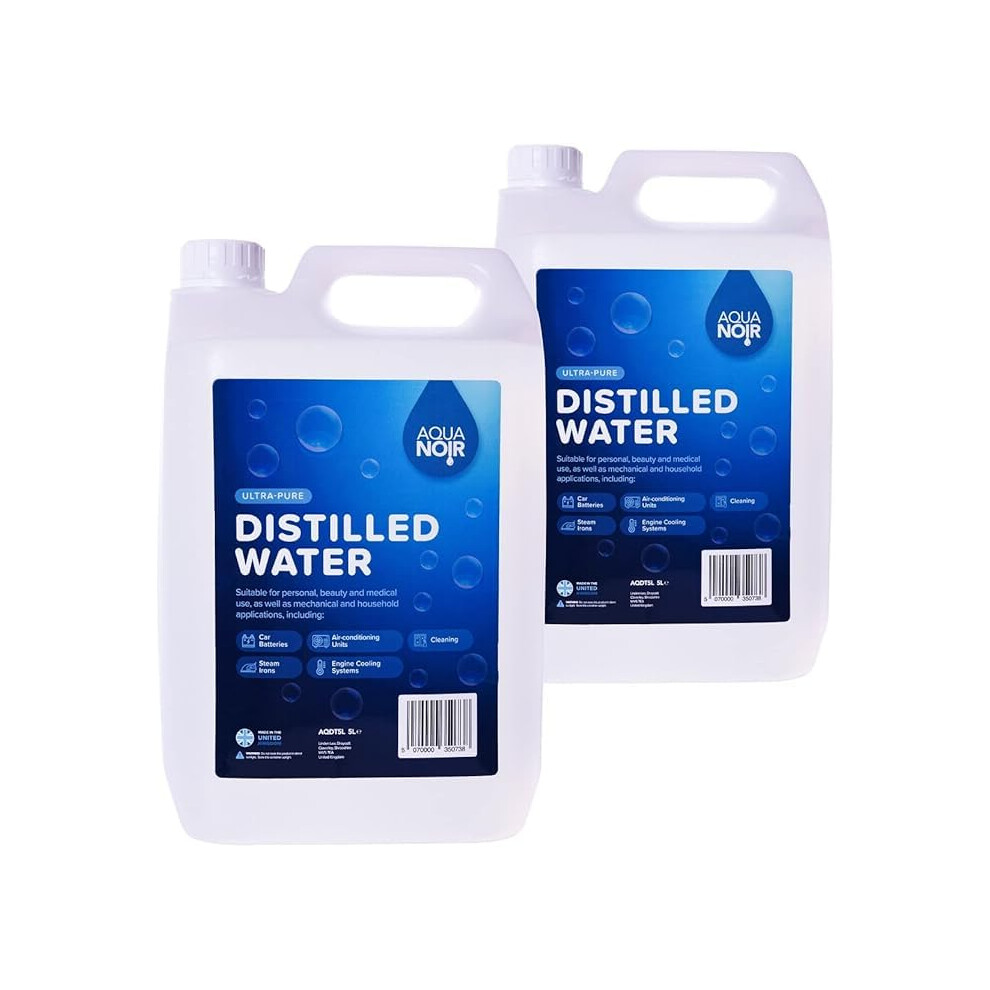 AQUANOIR Distilled Water 10L (2 x 5L) | Ideal for Steam Irons, CPAP Machines & Car Batteries| Purified Water | Made in UK