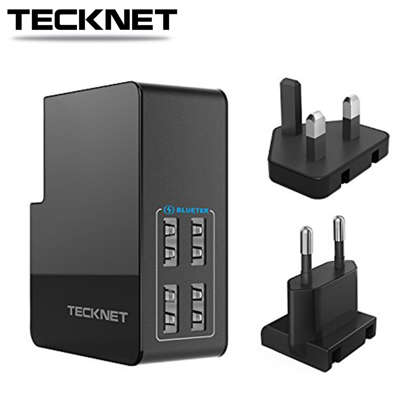 TECKNET 4-Port USB Wall Charger UK& EU Travel Plug Adapter for iPhone Samsung