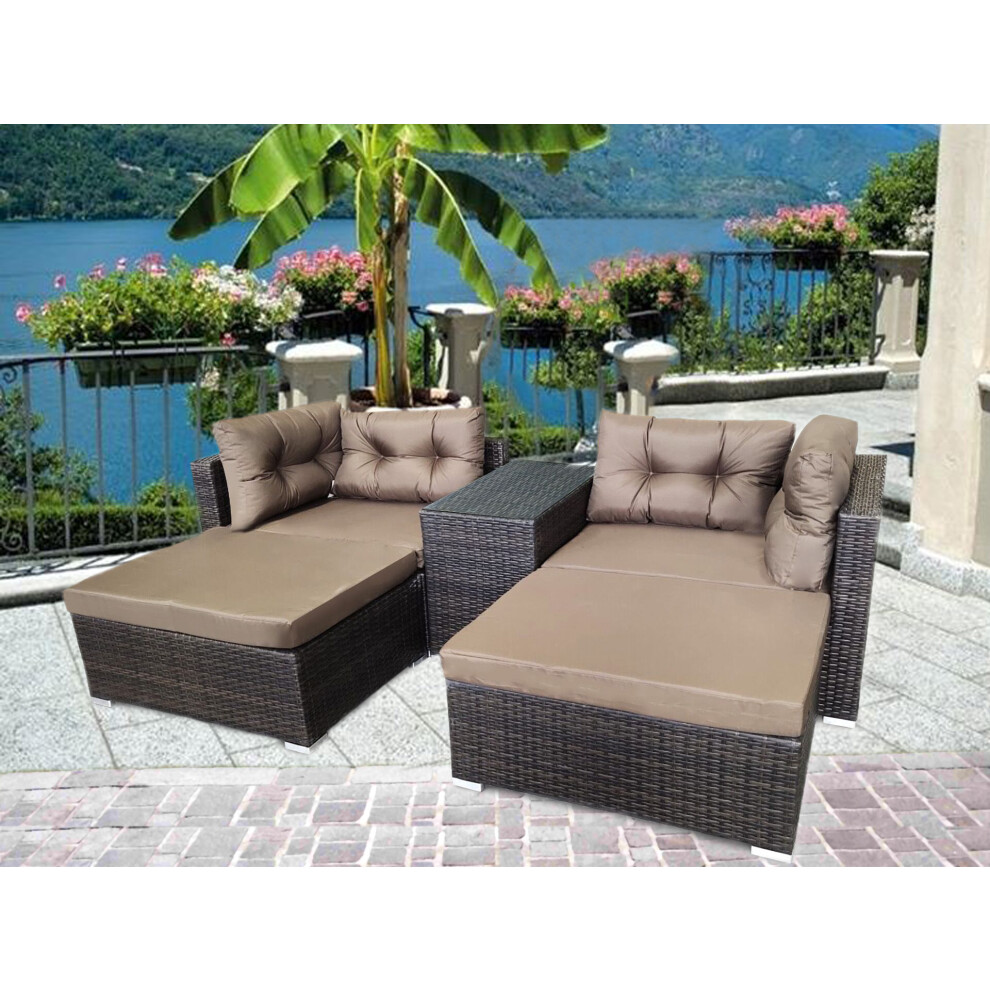 RATTAN GARDEN WICKER OUTDOOR SUN LOUNGER SOFA FURNITURE SET CUBE BROWN