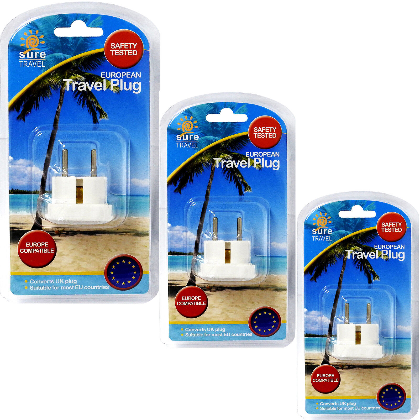 Sure Travel EURO Plug Triple Pack, 3 x UK to EU Power Convertor Adaptor