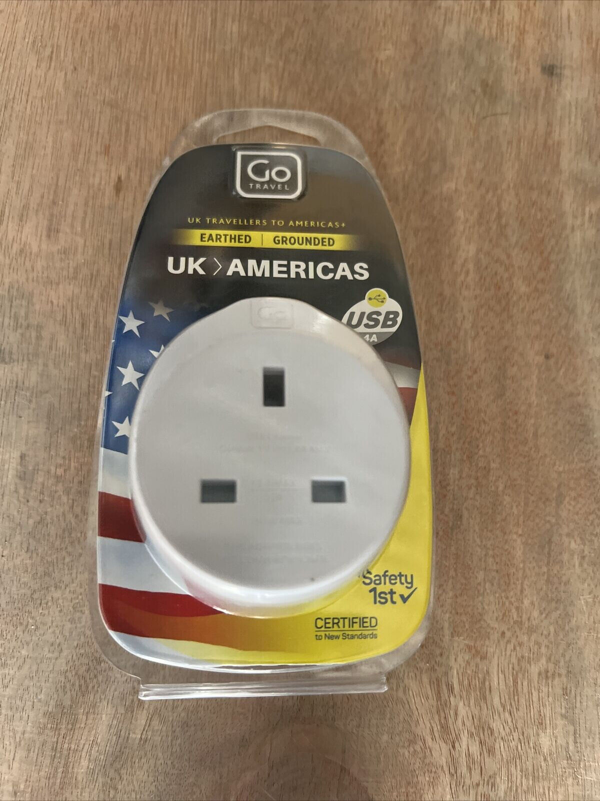 GO TRAVEL - UK to Americas Earthed/Grounded Travel Adaptor with 2.4A USB Port