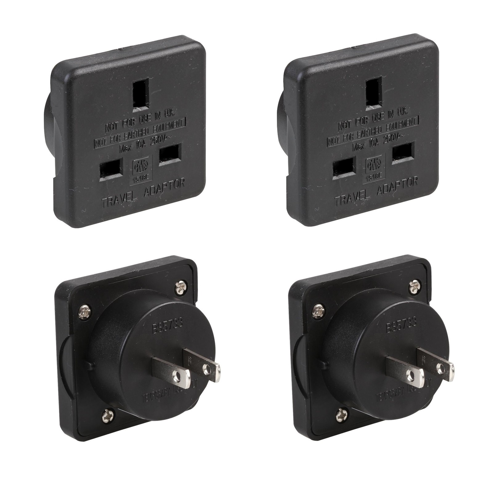 UK to USA US America Canada Tourist Travel Plug Power Mains Adaptor - Black x2