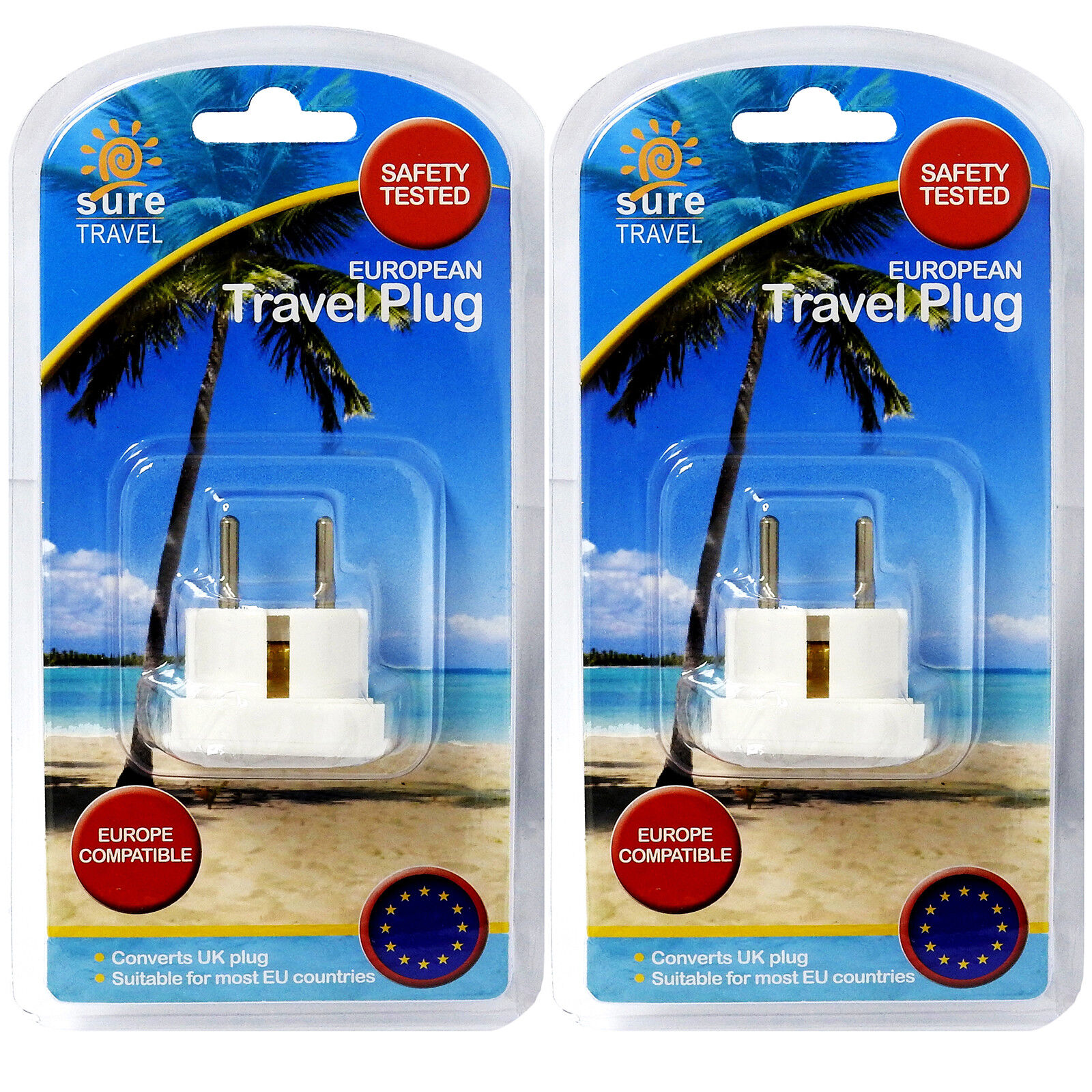 2 x Sure Travel UK to European Power Appliance Adaptor Convertor Plug Twin Pack