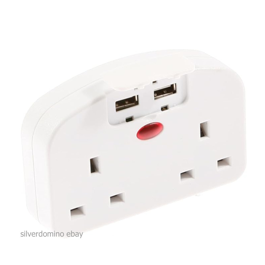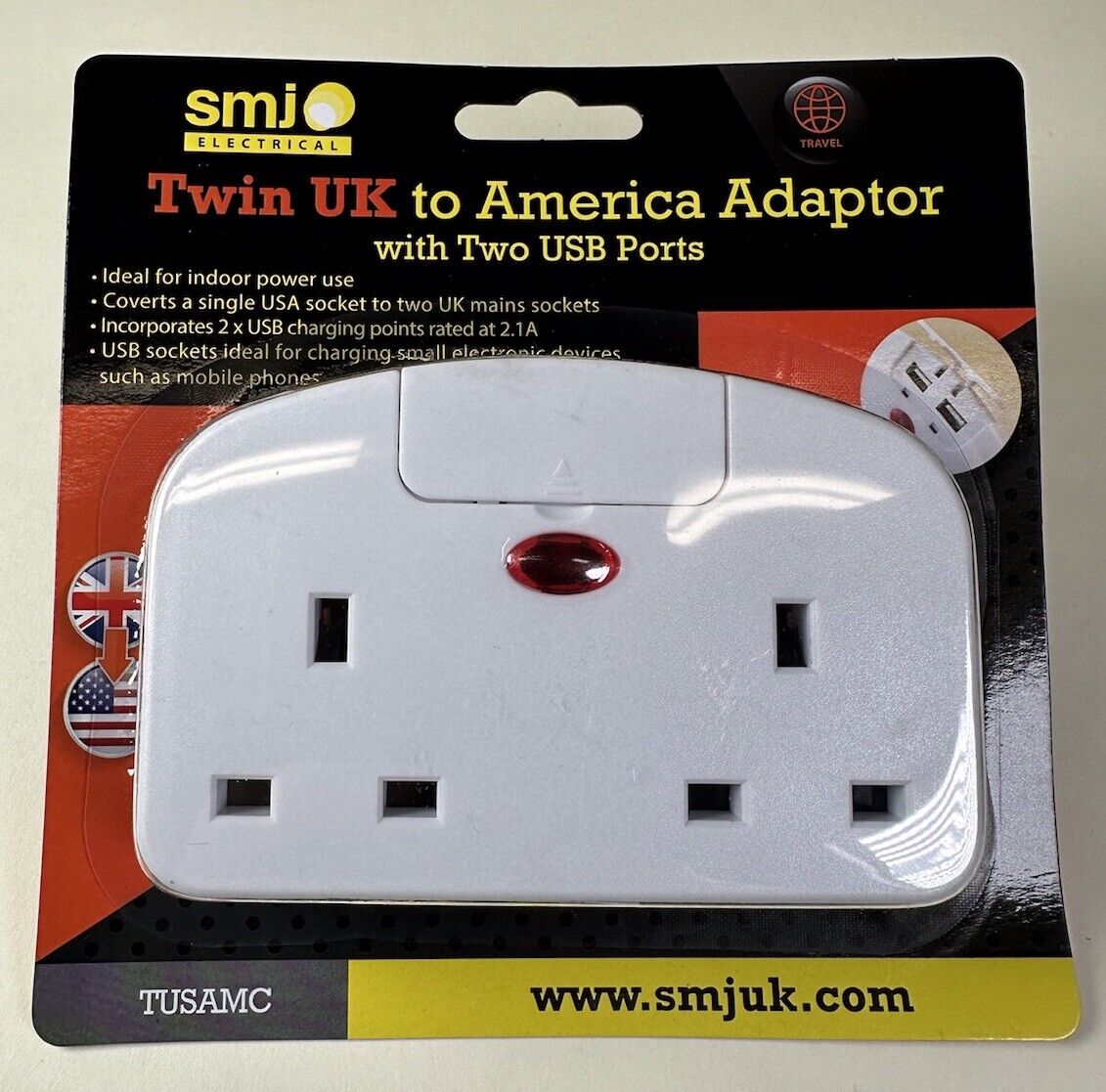 Twin UK to USA US 3 Pin America Travel Plug Power Mains Adaptor White Plus 2 USB