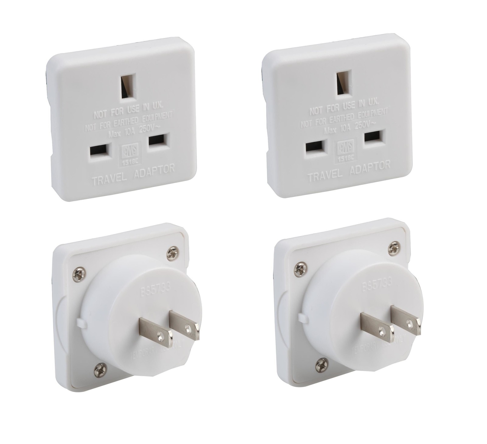 Go Travel Euro to UK & US & AUS Plug Socket Adaptor 2 Pack Convert EU Adapter
