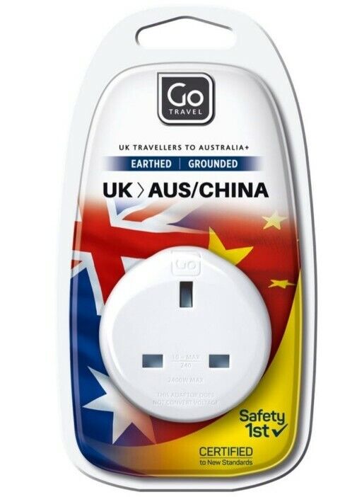 Go Travel UK to AUS Australia & China Earthed Adaptor Plug Socket Adapter SAFE