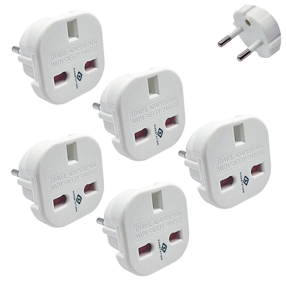 Pipestation UK to European Plug Adapter (5 Pack) | Travel Plugs UK to EU | Universal Adapter Plug to Europe Type C, E, F - EU Travel Adaptor | Small,