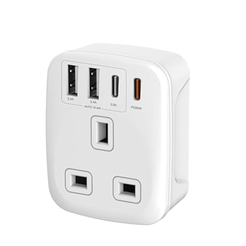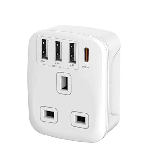 UK to European Travel Plug Adaptor,UK to EU Adapter with 3 USB A and 1 USB C Po