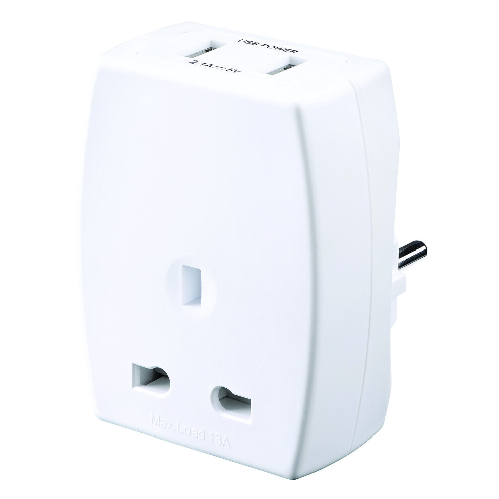 masterplug TAUSBEUR2 UK to EU Plug Adapter Converter with 2.1 A USB Charger - White