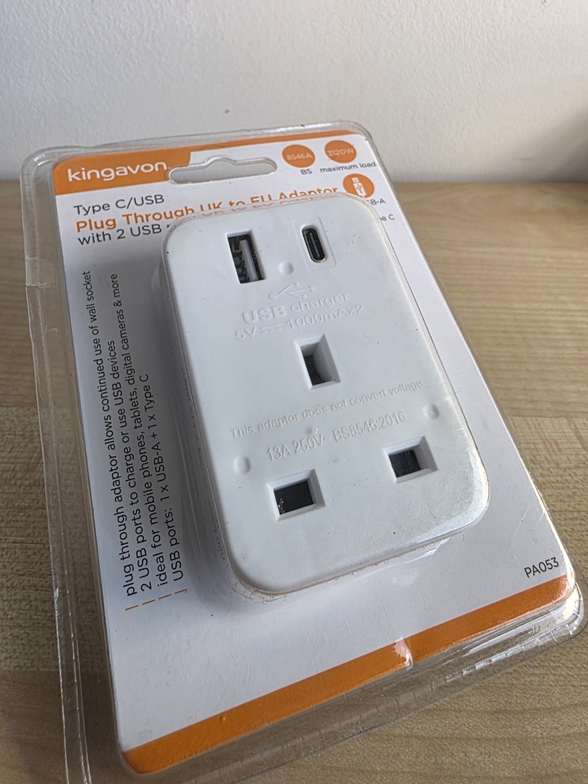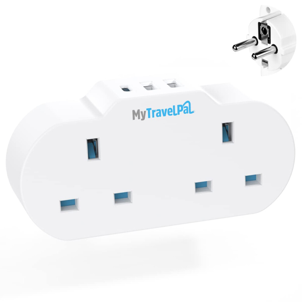 MyTravelPal UK to Europe Travel Adapter With USB & USB-C | 2 Way European Travel Adaptor Plug with UK Safety Standards | Double UK to EU Plug Adapter