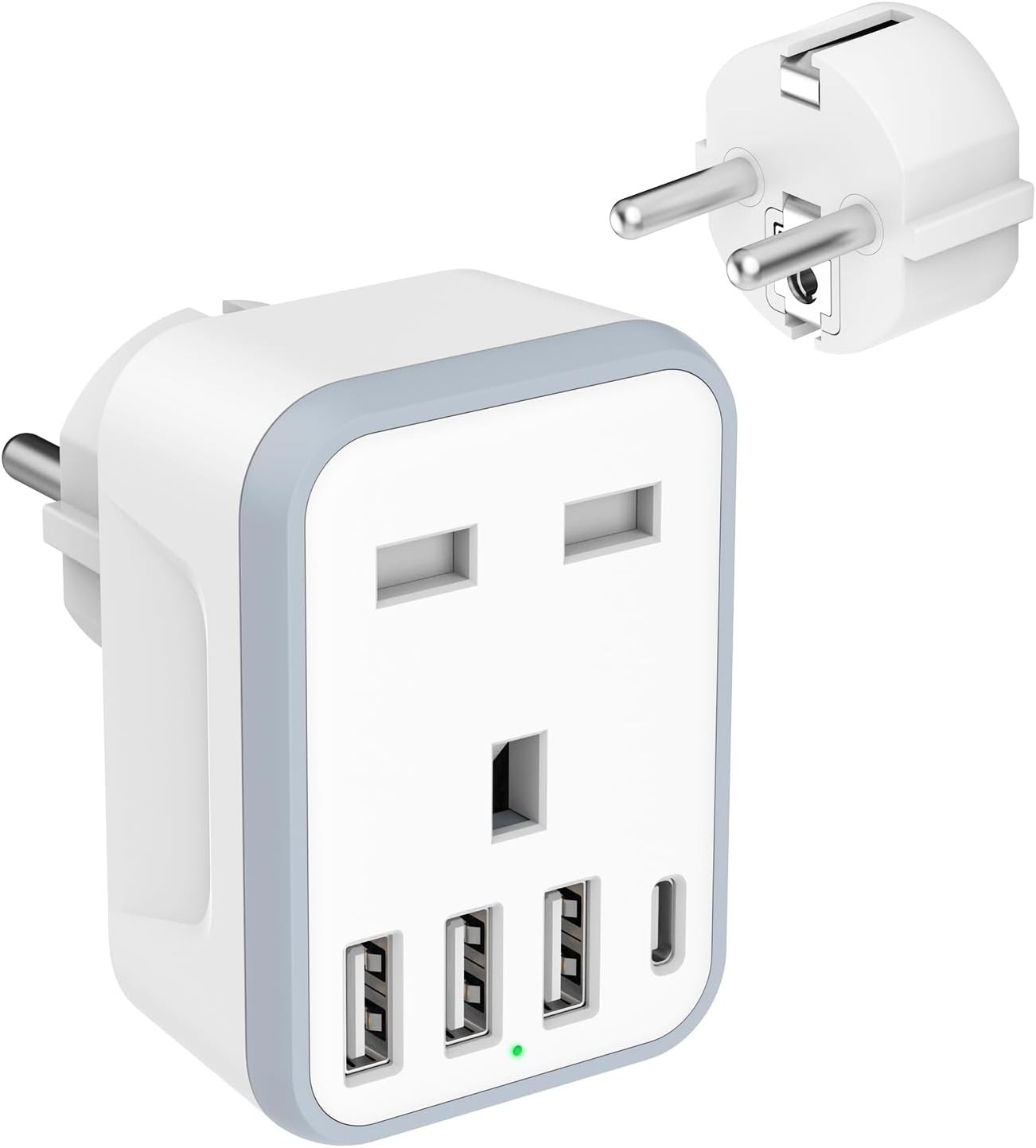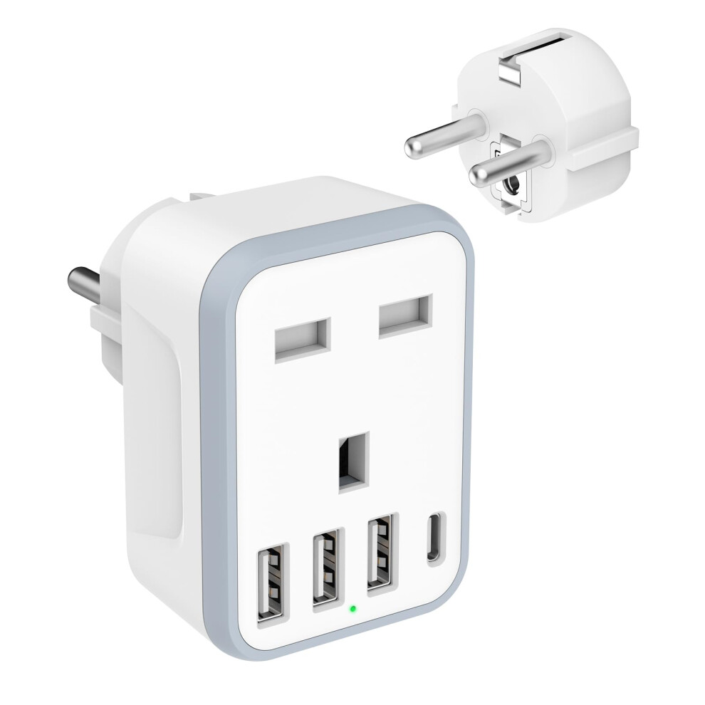 European Travel Adapter - 5 in 1 UK to EU Adapter with 4 USB Ports, UK to Turkey