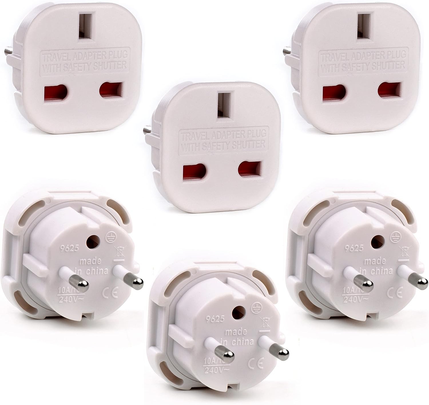 SPARK KNOT UK to EU Travel Adapter Plug Type C/E/F White 6-Pack