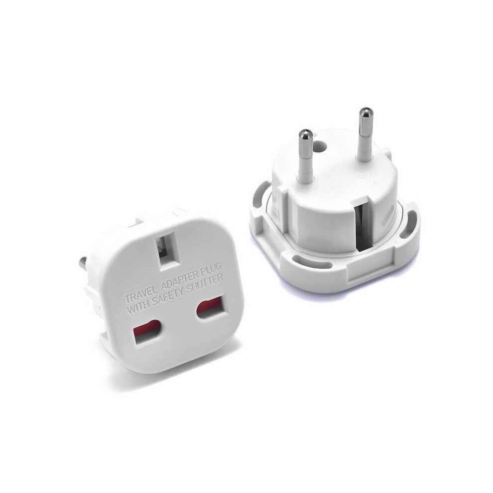 Travel Adapter - UK to EU Euro European adapter White Plug 2 Pin - Pac