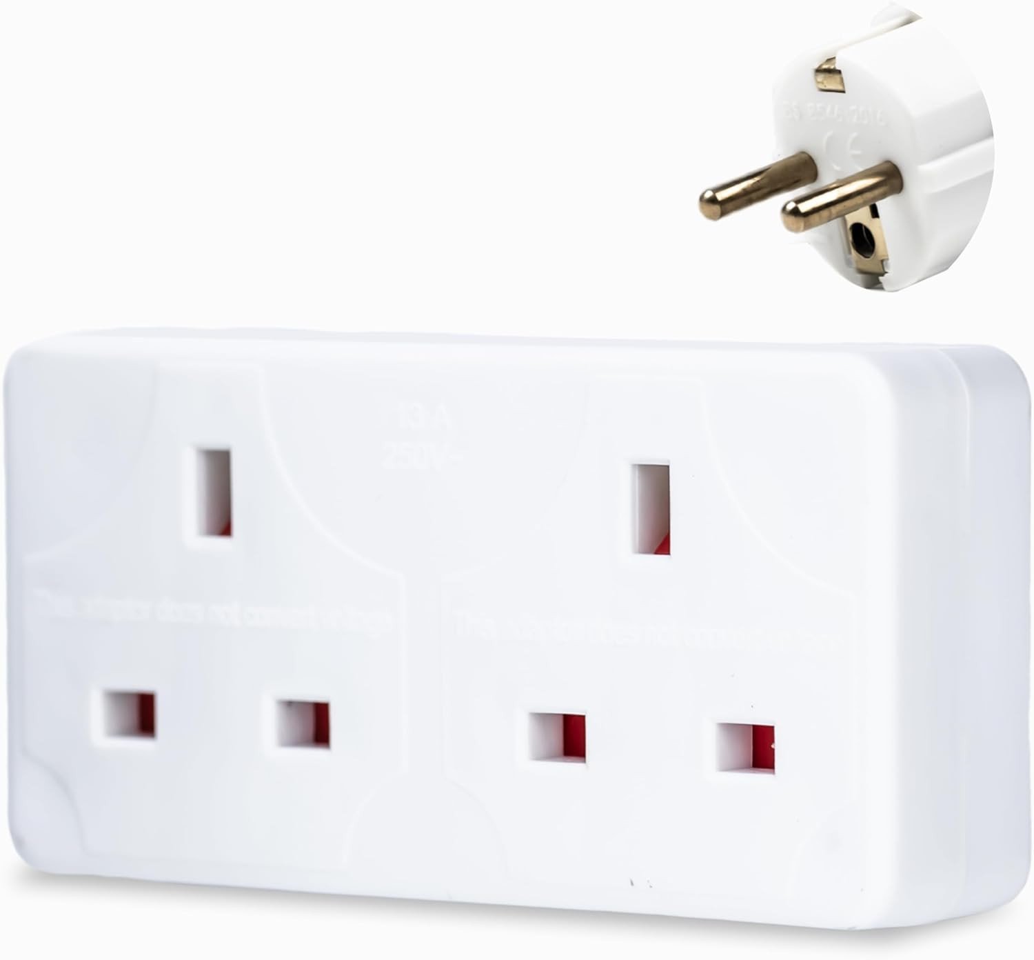 STATUS 2 Way UK to EU Travel Adapter, Twin Plug Converter for European Sockets,