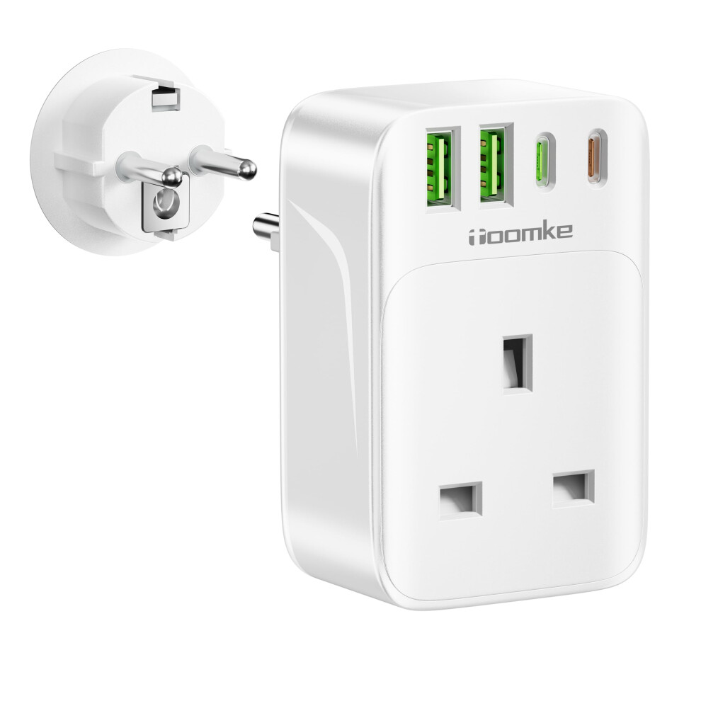 Double Dragon 20W Fast Charging 5-In-1 UK to EU Travel Adapter | 3 USB-A & 1 USB