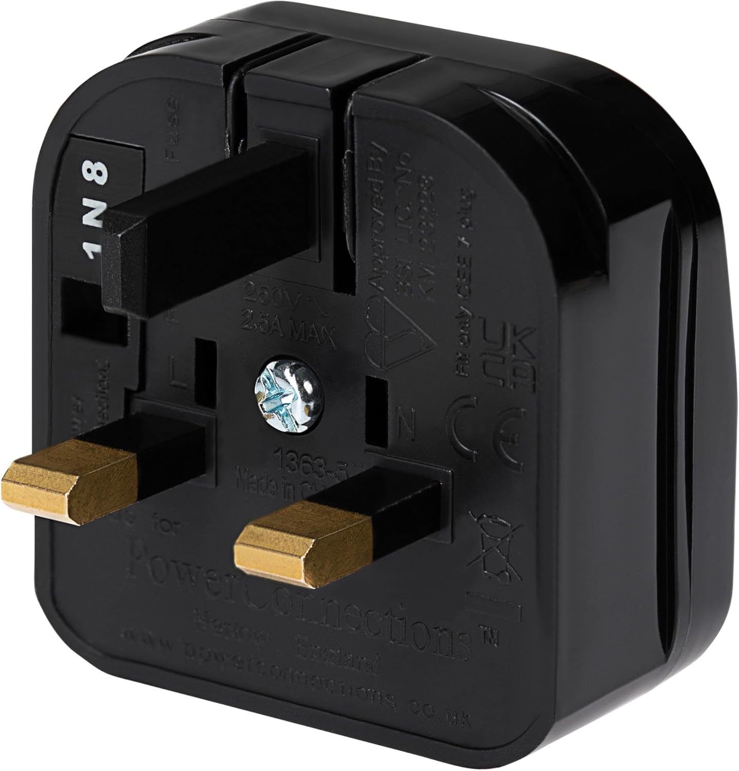 POWERCONNECTIONS - Euro to UK Converter Plug, Reusable Screw, 3A, Black