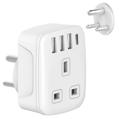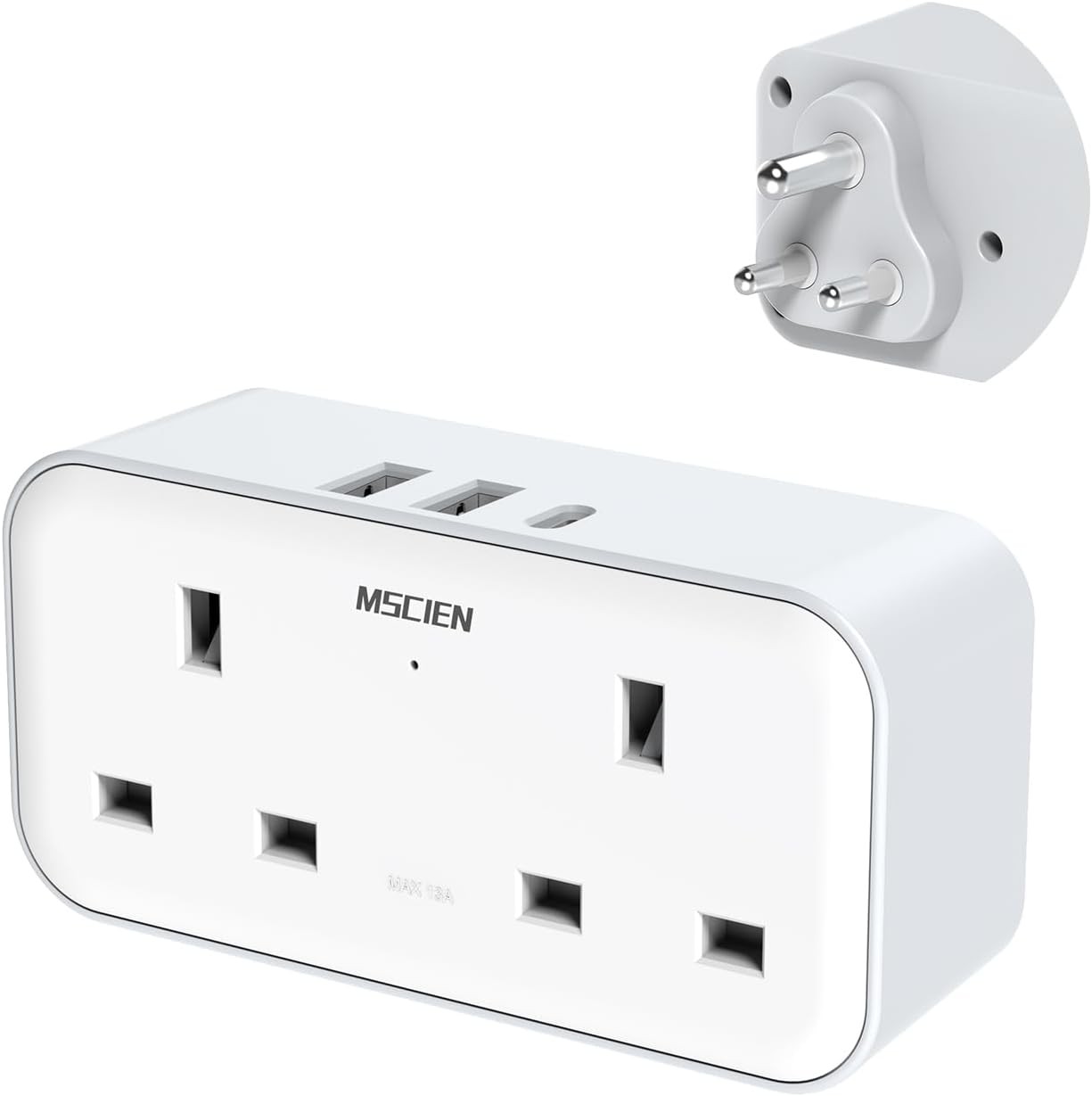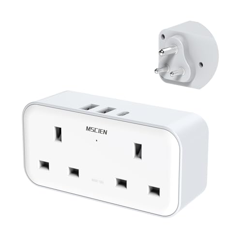 UK to India Plug Adapter, MSCIEN Travel Adapter with 3 USB (1 C),...
