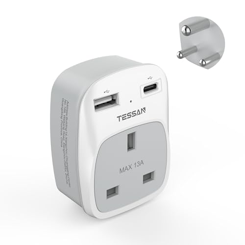 UK to India Plug Adapter with 2 USB, TESSAN India Travel Adapter 3 Pin Type D P