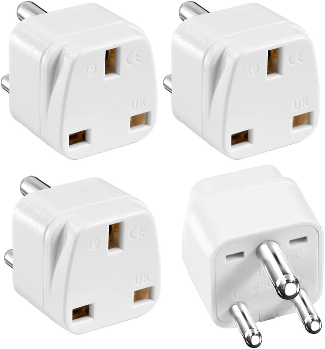 4 Pack UK to India Plug Adapter India Travel Adapter (White 4 Pack)
