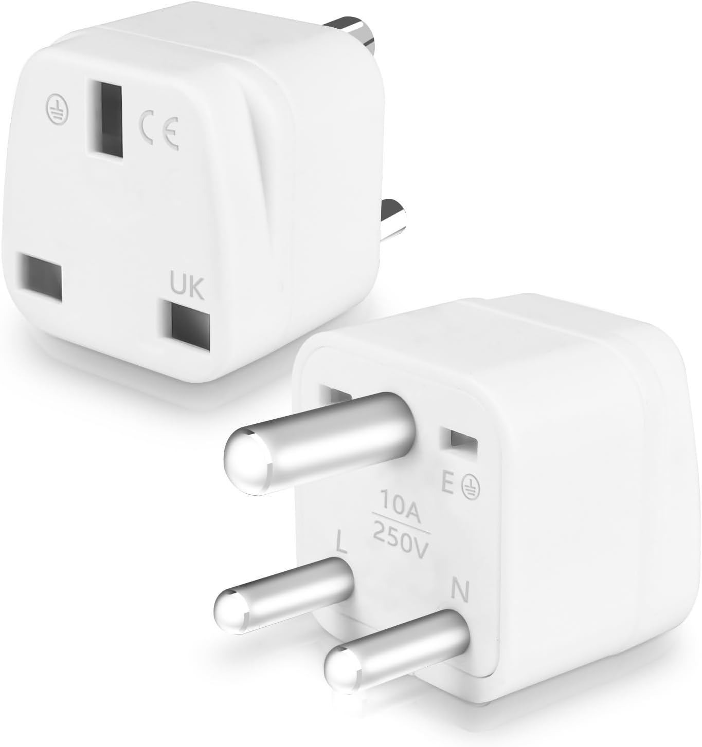 Pipestation UK to India Plug Adapter â 2 Pack | India to UK Travel Adapters | UK 3 Pin to India 3 Pin Plugs for Indian Power Socket| Universal Trave