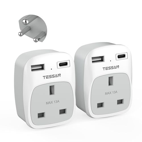 UK to India Plug Adapter 2 Pack, TESSAN Indian Travel Adapter with 2 USB Ports(1 USB C), Plug Socket Adaptor UK to Sri Lanka, Pakistan, Burma, Maldives, Iraq, Namibia, Nepal, Yemen, Zambia (Type D)