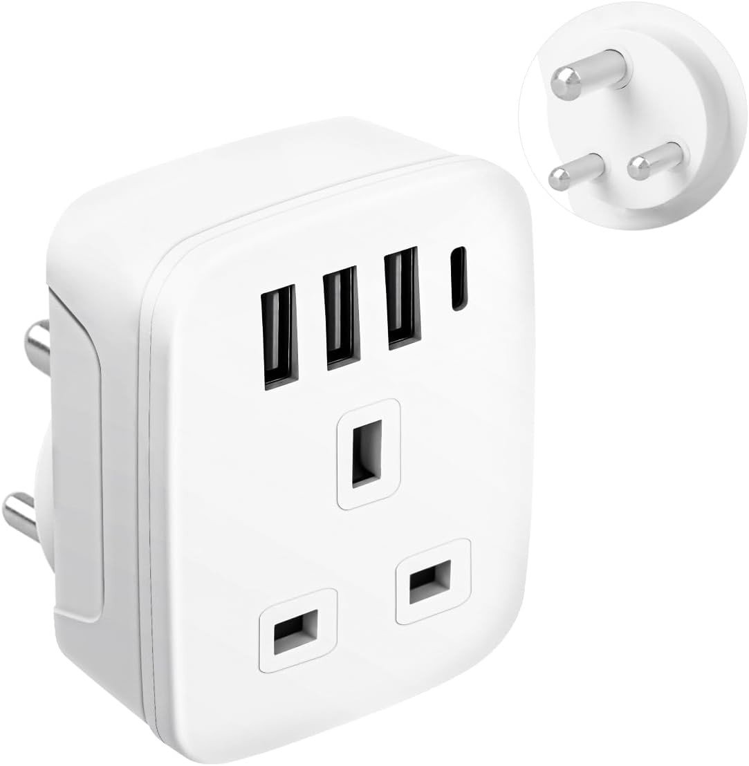 UK to India Plug Adapter,India Travel Adapter with 1 UK Socket and 4 USB(USB 1PC