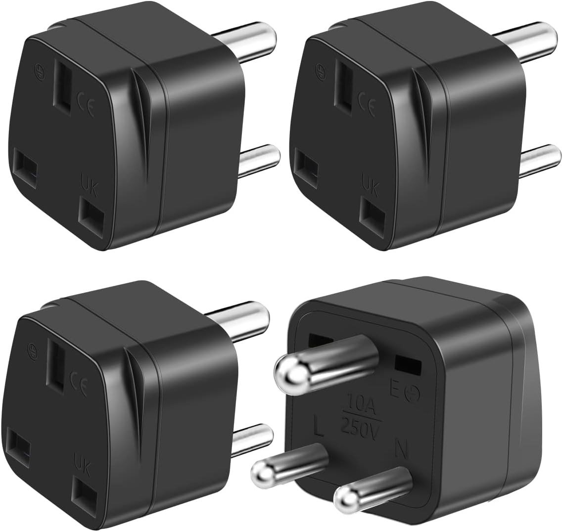 4 Pack UK to India Plug Adapter India Travel Adapter Maldives Plug Adapter for I
