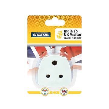 1pk STATUS India to UK Plug Adapter White 2 Pin to 3 Pin Traveller Plug Adaptor