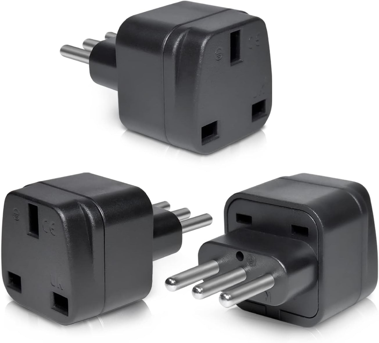 3-Pack UK to Italy Plug Adapter,SHUOMAO 3 Pin Travel Black