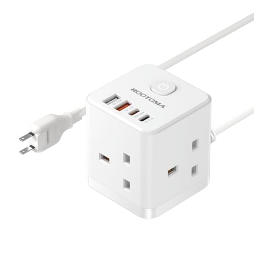 Japan Travel Adapter 3 Way 4 Fast Charging USB (QC3.0/PD20W) with 1.5M Extension Cable Compact Cube UK to Japan Plug Adapter