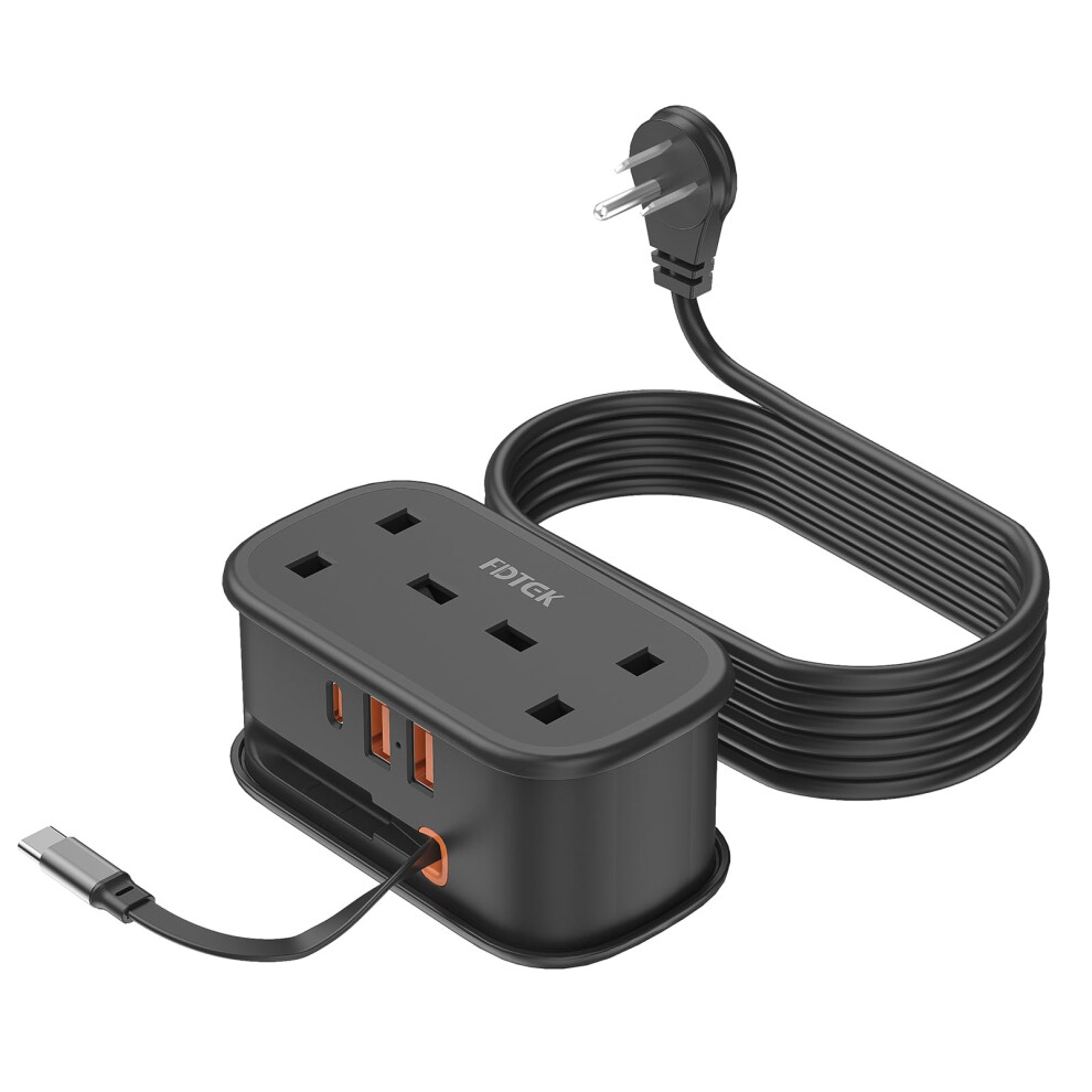 UK to US Plug Adapter with 1.5M Extension Cable, BEVA 2 Way 3 USB (2A+1C) Travel Adapter with Retractable USB C Cable for American, Thailand, Canada,