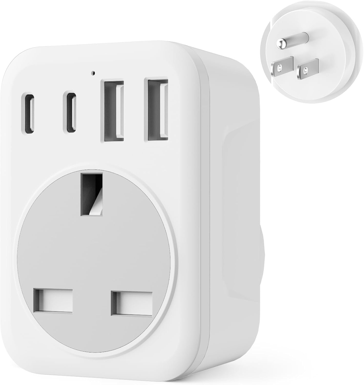 UK to USA Plug Adapter, US Travel Adapter with 2 USB &2 USB C Ports, 5 IN 1 Ame