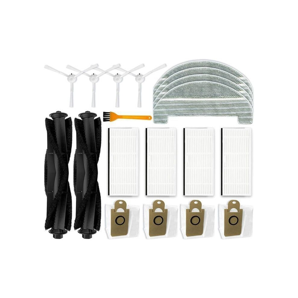 25Pcs Main Brush Filters Side Brush Kit for Ultenic T10 Robot Vacuum Cleaner Spare Parts, 2 Main Brush, 5 Mop Pads, 5 Dust Bags, 8 Side Brushes, 5