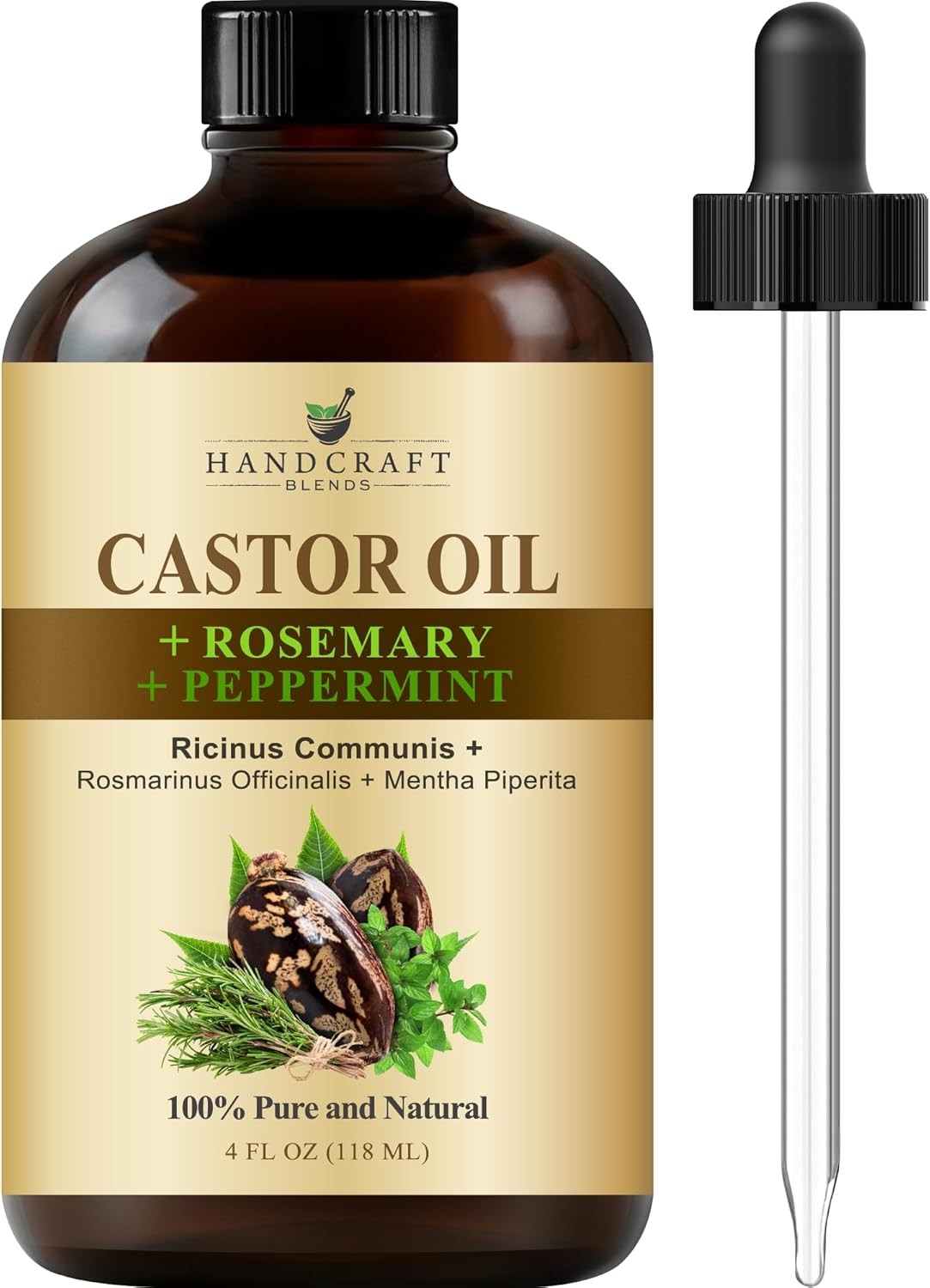 Handcraft Blends Cold-Pressed Organic Castor Oil 118 ml | Glass Bottle | Lash Brushes | 100% Pure and Natural | Premium Grade Carrier Oil | Hair, Eyelashes and Eyebrows | Hair and Body