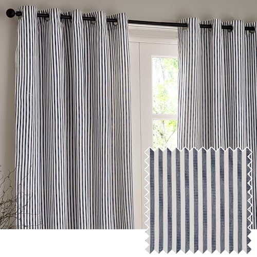 furn. Yard Hebden Blackout Eyelet Curtain Pair – Ultra Soft Cotton Lined Striped Curtains (Navy - 229x183cm)