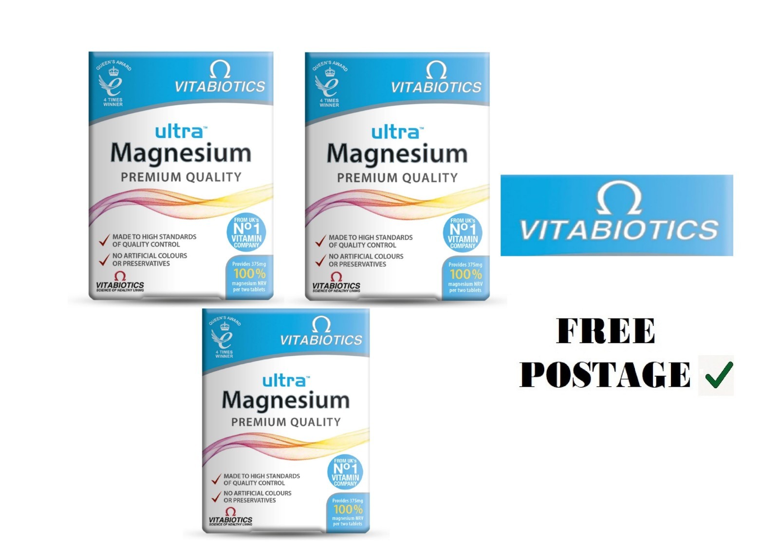 Vitabiotics Ultra Magnesium 375mg Premium Quality - 60 Tablets (Pack ot 3)