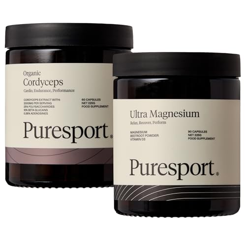 Puresport Run and Recover Bundle | 1 x Ultra Magnesium (90 Capsules) & 1 x Cordyceps (60 Capsules) | Supports Recovery, Sleep & Aerobic Efficiency | Boosts Cardiovascular Health | Vegan Friendly