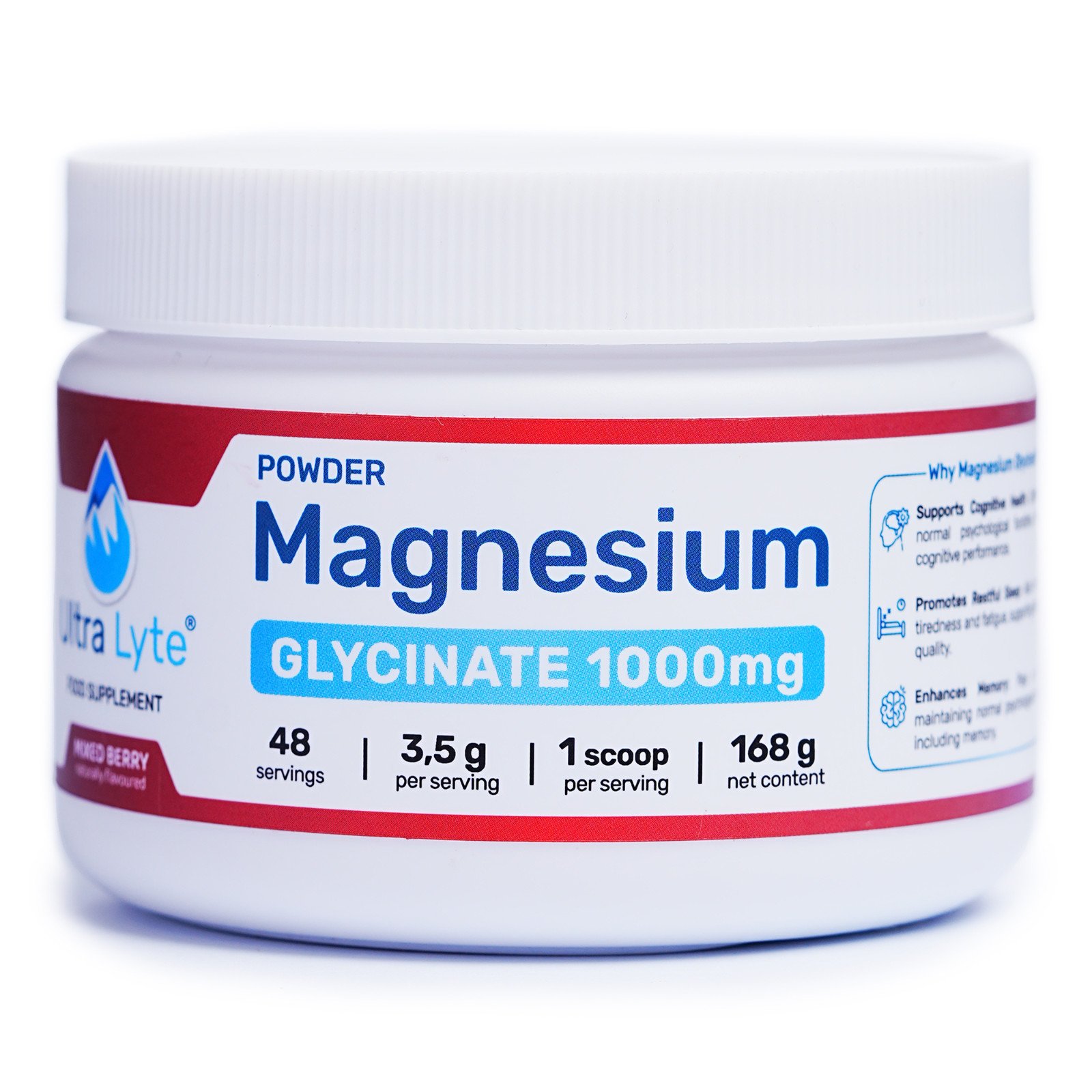 Ultra Lyte Magnesium Glycinate 180g, Mixed Berry - Sugar-Free 200 mg Magnesium per Serving, High-Absorption Powder (45 Servings)