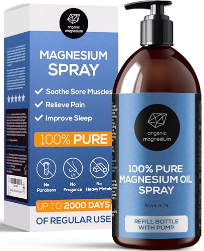 Magnesium Oil for Sleep 1000ml - 100% Natural & Ultra Pure Magnesium Oil | Topical Organic Magnesium Foot Spray Refill Bottle for Restless Legs & Muscle Cramp Relief | from Ancient Zechstein Seabed